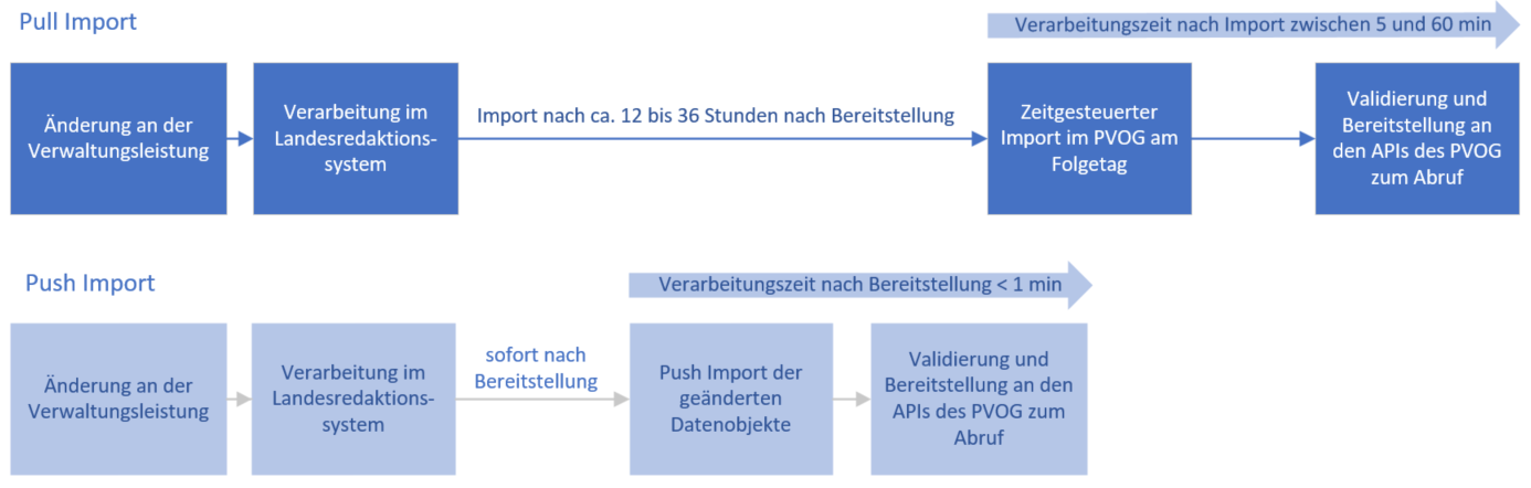 Mit der Umstellung auf die Push-Schnittstelle kann dieser Zeitraum radikal verkürzt werden. Die Landesredaktionen können Änderungen sofort an das PVOG senden und in weniger als einer Minute ist die Information verfügbar.